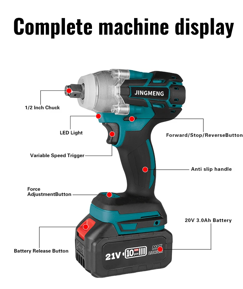 A chave de impacto sem fio 21V é compacta, oferece 2 seleções de saída de torque, que tem energia suficiente para quebrar fixadores teimosos, porcas enferrujadas, removendo pneus de carros ou caminhões. Alterne-o para ajuste de torque mais baixo para reparos automotivos, motocicletas ou grandes projetos de construção, parafusos, montagem de produtos ou outras manutenções pesadas. O motor brushless mantém esta arma impacto um poder consistente e vida mais longa.