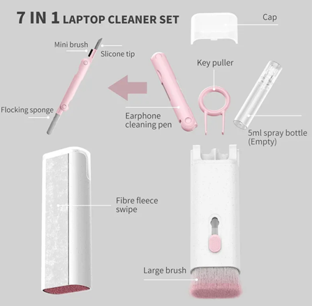 Você está cansado de lutar para limpar seu teclado e remover a sujeira acumulada entre as teclas? Apresentamos o Kit de Escova para Limpeza de Teclado 7 em 1, a solução perfeita para deixar seu teclado limpo e funcionando como novo.